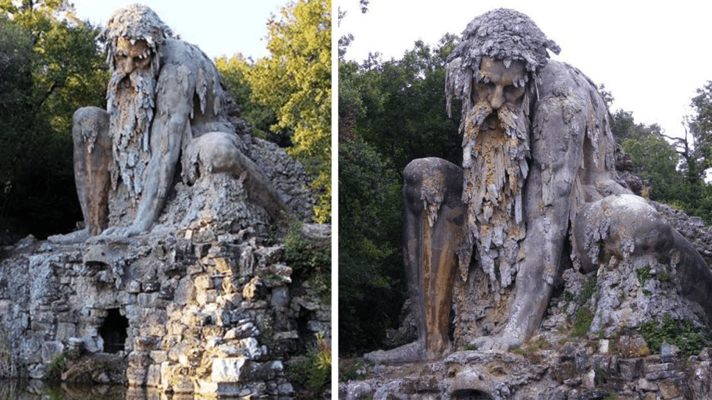Custodita nell’affascinante cornice di Villa Demidoff, in Toscana, un’enorme statua cattura immediatamente l’attenzione di ogni visitatore. Il Colosso dell’Appennino è un gigante di pietra alto ben 14 metri, con una lunga barba e una posa suggestiva, incredibilmente naturale. La statua poggia su una base che in realtà è una grotta con un ingresso che porta all’interno dell’opera stessa[1]. La tecnica ornamentale che caratterizza il gigante conferisce l’illusione che il Colosso stia uscendo dal laghetto e sia in qualche modo “vivo” grazie ai licheni, al muschio e al fango che ricoprono in parte l’opera. A realizzarla fu lo scultore fiammingo Jean De Boulogne (più conosciuto con lo pseudonimo di Giambologna) intorno al 1580[2].