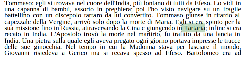 Circa gli ultimi giorni della Madonna, Emmerick raccorta che gli angeli avvisarono gli apostoli della sua morte imminente. L’apostolo Tommaso, detto Didimo, non fece in tempo a giungere a Efeso poiché si trovava lontano essendo giunto sino in Tartaria… Aveva anche un discepolo tartaro.